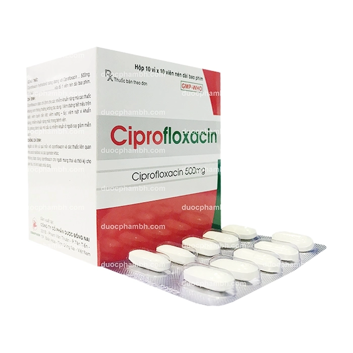 Thuốc kháng sinh Donai pharma Ciprofloxacin 500mg, Hộp 100 viên