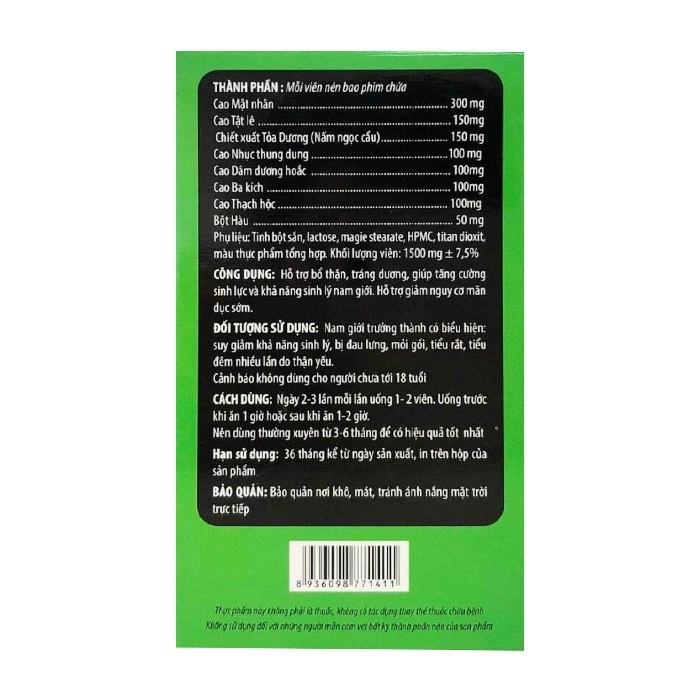 - Hỗ trợ bổ thận, tráng dương, giúp tăng cường sinh lực và khả năng sinh lý nam giới.
