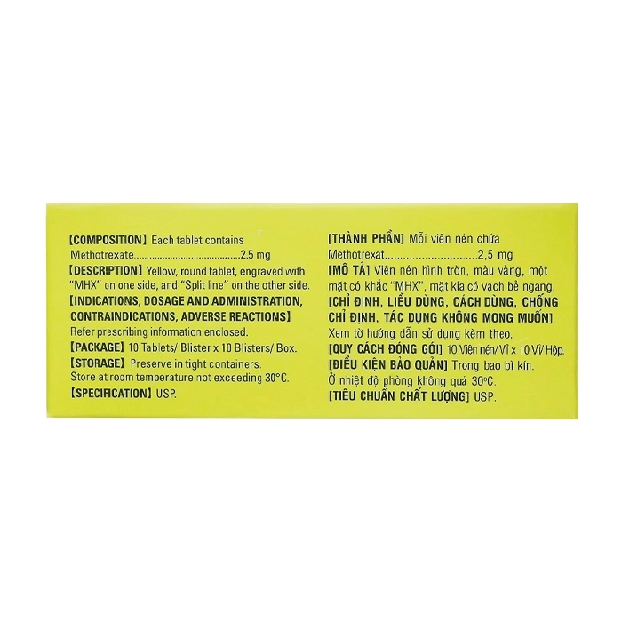 - Viêm khớp dạng thấp: Liều uống: 7,5-20 mg một lần trong tuần hoặc chia liều thành 3 lần, mỗi lần cách nhau 12 giờ.